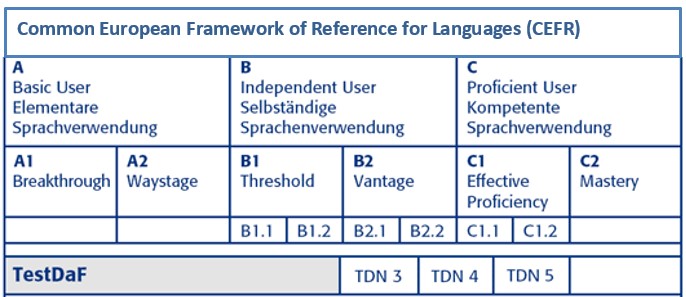 يجب على أيّ شخص يرغب في الدّراسة في إحدى الجامعات الألمانيّة إثبات أنّ لديه المهارات اللغويّة الكافية الّتي يمكن معرفتها بواسطة TestDaF، واعتماداً على عدد النّقاط الّتي يحصل عليها المُتقدّم في الامتحان (TDN) يتمّ تحديد المستوى اللغويّ في الشّهادة على النّحو التّالي: