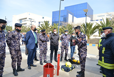واشتمل الحفل الذي حضره نائب رئيس الجامعة الأستاذ الدكتور مالك الشرايري ومدير دفاع مدني مأدبا ومساعد عميد شؤون الطلبة بالجامعة الدكتور هاني محسن وطلبة الجامعة وموظفيها على إقامة معرض للآليات والمعدات المستخدمة في عمليات الإنقاذ والإسعاف والإطفاء وإنقاذ حالات الاختناق والكسور ومحاضرات توعوية.