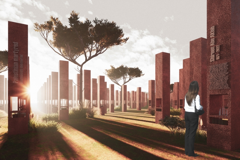 وعن مشروعه ذكر زريقات أنه جاء تحت اسم (صوت – مراسلون بلا حدود – بيت جبرين) وبينما كان المطلوب إعادة إعمار قرية بيت جبرين المدمرة وخلال عمله على مشروع تخرجه حدثت حرب الإبادة على غزة، ولاحظ زريقات ازدواجية المعايير وصمت العالم الغربي عن المجازر التي يرتكبها الاحتلال الصهيوني في فلسطين، ومن هنا كان قرار دمج متحف يعرف الجمهور بتاريخ القرية وما يميزها مع مقر لمنظمة مراسلين بلا حدود يكون بعيدا عن تأثيرات الغرب ويكون صوت لكل المظلومين في العالم بلا تحيز او ازدواجية معايير.