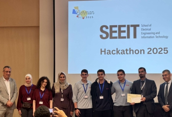ضمن فعاليات الأسبوع الألماني الذي نظمته الجامعة الألمانية الأردنية، نظمت كلية الهندسة الكهربائية وتكنولوجيا المعلومات (SEEIT) مسابقة الهاكاثون السنوية لعام 2025، والتي هدفت إلى تعزيز الابتكار والعمل الجماعي ومهارات حل المشكلات لدى الطلبة في مجالات تكنولوجية متعددة.