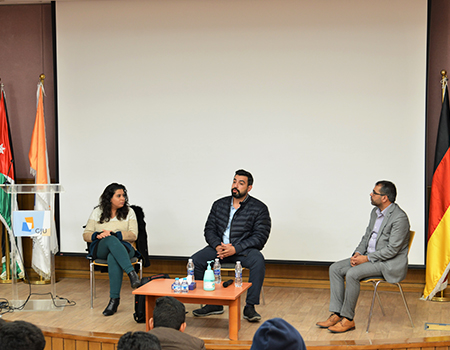 نظمت عمادة الابتكار ونقل التكنولوجيا والريادة في الجامعة الألمانية الأردنية لقاء لطلبة الجامعة استضافت خلاله لين ملكاوي من المنتدى الاقتصادي العالمي ومؤسِسة واصل ومهنتي وخريج الجامعة المهندس محمد أبو حمدة صاحب خدمات Autohub وAutoscore للتحدث عن قصة نجاحه في عالم الريادة والأعمال بعد التخرج.