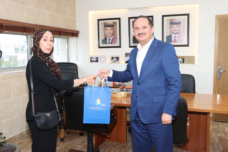 استقبل رئيس الجامعة الألمانية الأردنية الأستاذ الدكتور علاء الدين الحلحولي المتصرف المستشار في دائرة العلاقات العامة والتعاون بجامعة بومرداس الجزائرية الدكتورة سعاد لعلامي التي أمضت أسبوعين في الجامعة كفترة تدريبية قضتها بدائرتي الشؤون الدولية والموارد البشرية.