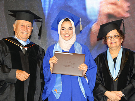 Prof. Fayyad expressed her delight to share these moments with the graduates and their families, after a long journey of hard work to achieve all success requirements, stating that the graduation memory is a special memory, where a new journey of life and a starting point for its wide horizons and hopes.