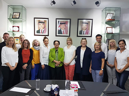 The visit comes within the framework of a bilateral exchange program, which is coordinated by the University of Magdeburg annually. The delegation met with the President of GJU Prof. Manar Fayyad, Vice Presidents Prof. Atef Kharabsheh, and Prof. Ralf Roßkopf.