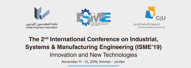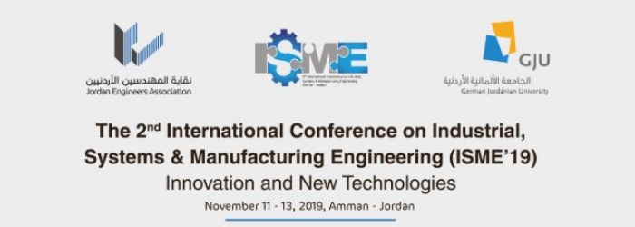 Engineers Association (JEA) and German Jordanian University (GJU) cordially organizing the 2nd International Conference on Industrial, Systems & Manufacturing Engineering (ISME'19), under the theme of Innovation and New Technologies. ISME'19 aims to address and connect current issues in research and applications in the various fields of industrial, systems and manufacturing engineering. Additionally, ISME'19 will act as a major forum for researchers, engineers, industrialists, practitioners and students from all over the world; particularly from the Middle East. The forum opens the door for presenting the latest research results and exchanging cutting-edge ideas and practical experiences in conference-related subjects.