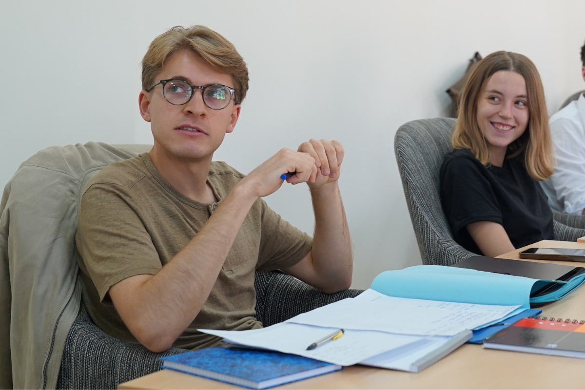 Classes are supported by expert instructors using curated materials, worksheets, multimedia content (podcasts, videos, songs), and interactive classroom activities.