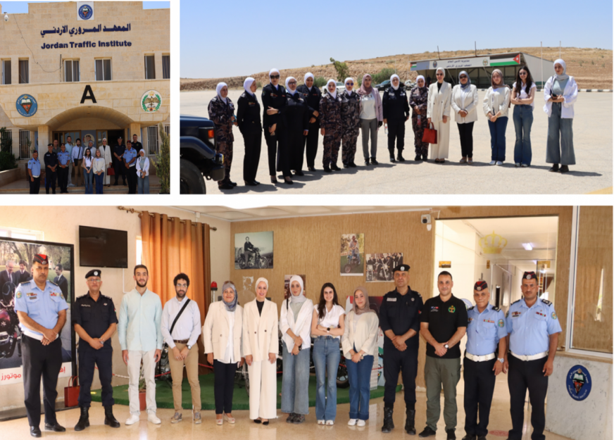 The Jordanian Traffic Institute / Public Security organized an honorary visit to the Road Safety Center of Excellence / German Jordanian University, represented by Dr. Farah Al-Atrash, Director of the Center of Excellence for Road Safety, the Assistant Director of the Center, and a group of students who participated in designing traffic gardens at several schools in the Aqaba Special Economic Zone on Tuesday, June 25, 2024. The center worked on designing the targeted gardens with designs that reflect modernity, creativity, and scientific developments aimed at improving traffic safety.