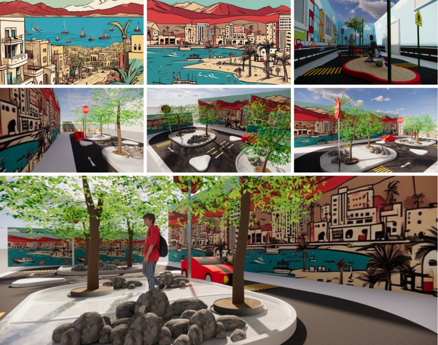 The Road Safety Center of Excellence / German Jordanian University, in cooperation with the Jordanian Traffic Institute / Public Security, represented by the Director of the Center of Excellence for Traffic Safety, Dr. Farah Al-Atrash, accompanied by a group of students and affiliates of the Traffic Safety Club, organized a visit to the city of Aqaba to participate in the design of traffic parks in the Special Economic Zone / Aqaba, where the club members will participate in a competition to design traffic parks for the following schools: