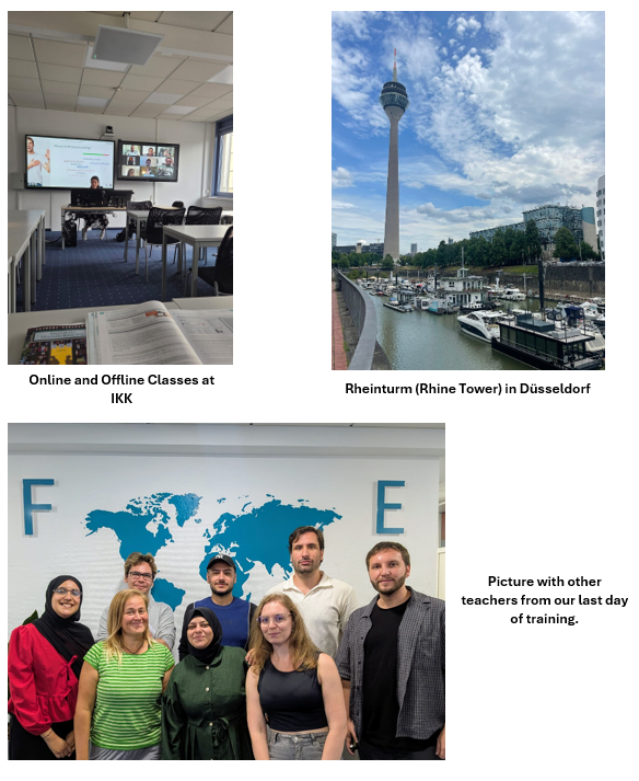 As a German teacher at GJU University, I had the opportunity to complete a month of training at IIK Düsseldorf, a language school in Germany. This training report provides a brief description of and reflection on my training period. It includes general information about the internship location, my observation experience, and an evaluation of the learning process and also includes some photographs from the training.