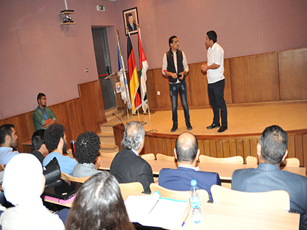 In the presence of GJU President Professor Natheer Abu Obeid, the Dean of Students Affaris Dr. Omar Shubailat and a number of GJU students, the Public Security Directorate in collaboration with Deanship of Student Affairs organized a stage show about raising awareness of car accidents and road safety.