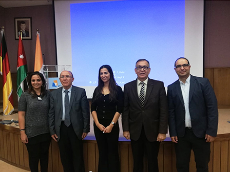 On Sunday, November 18, 2018, The Department of Medical Engineering at School of Applied Medical Sciences at German Jordanian University (GJU) organized a seminar on the success story of Engineer Ruba Al Qudah, in the presence of the Acting Dean of the school of Basic Sciences and Humanities (SBSH) Dr. Akeel Al-Kazwini, Vice Dean of the School of Applied Medical Sciences (SAMS) Dr. Walid Al-Zyoud, Dr. Munib Saket and Dr. Thelal Aweys.