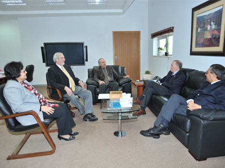 Prof. Natheer Abu. Obeid , the President of GJU held talks with the president of the University of Nebraska, Dr. Harvey Perlman, during his visit to GJU on Thursday 27 Feb, 2014.