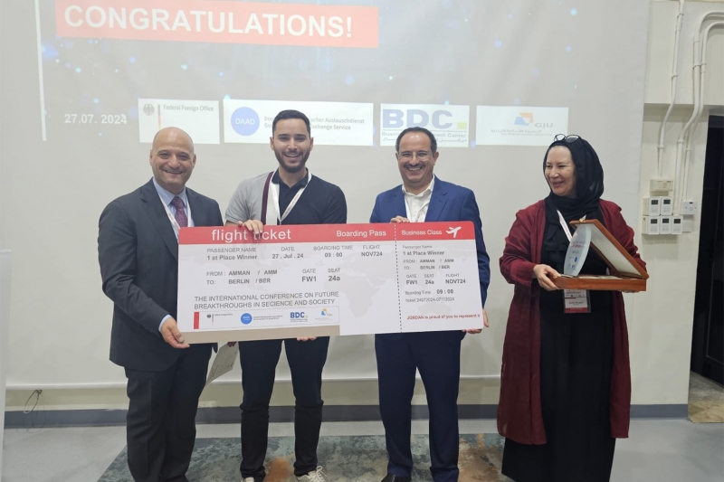 The Deanship of Innovation, Technology Transfer and Entrepreneurship at the German Jordanian University (GJU), in collaboration with the German Academic Exchange Services (DAAD) and the Business Development Center (BDC), organized the Falling Walls Lab-Jordan 2024 on July 27, 2024 at the GJU-Jabal Amman Campus.