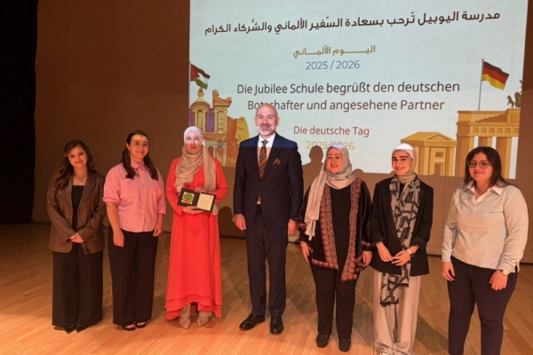 The German Jordanian University (GJU) participated in the German Day activities organized by Jubilee Schools, aiming to raise awareness of the importance of learning the German language and its role in building academic and cultural bridges between Jordan and Germany.