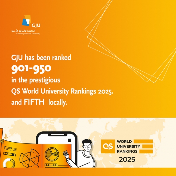 The German Jordanian University (GJU) has made significant progress in the 2025 QS World University Rankings, achieving a rank of 901-950 globally, which represents an improvement of nearly twenty percent compared to 2024 when it was ranked 1001-1200. Additionally, it secured the fifth position among Jordanian universities.According to performance standards and indicators, the university made advances in several areas. It was ranked among the top 554 universities globally in the category of employment reputation and among the top 601 in academic reputation. Regarding the faculty-to-student ratio, it was ranked among the top 645 universities. In the indicators of research impact, international research network, and sustainability, it was ranked among the top 701 globally.