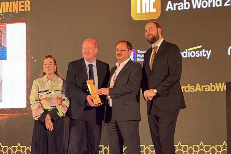 The German Jordanian University (GJU) has achieved another milestone in its distinguished record of success by winning the "Outstanding Contribution to Entrepreneurship" award as part of the Times Higher Education (THE) Arab World Awards 2024. The award was received by the university's president, Prof. Dr. Aladdin Al-Halhouli, during the Arab Universities Summit, held at Dubai University in collaboration with THE. Times Higher Education.