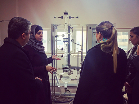 During her meeting, Ms. Freimann received a general introduction to the University, had a tour in the Separation Lab of the School of Applied Medical Sciences and most important, discussions with the Vice President for International Affairs Prof. Dorit Schumann, with the Head of GJU’s Industrial Relations Committee Dr. Ziad Abuelrub, with the Dean of the School of Management and Logistics Sciences Dr. Loay Salhieh, and with the Director of the Office for Industrial Links Britta Kaehler, and the GJU Dual Studies Advisor Randolph Galla.