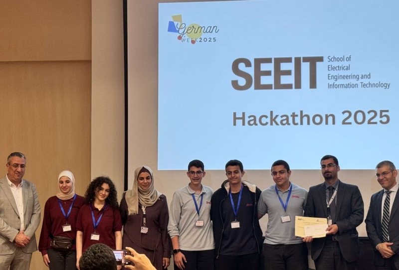 As part of the German Week celebrations at the German Jordanian University (GJU), the School of Electrical Engineering and Information Technology (SEEIT) successfully organized the 2025 SEEIT Hackathon, highlighting student innovation, teamwork, and problem-solving skills across various technology-focused categories.