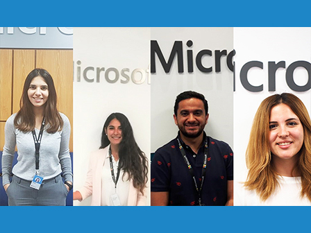 GJU graduates Nour Al Bataineh (Industrial Engineer, B.Sc. 2016), Leen Hijazi (Industrial Engineer, B.Sc. 2017), Reem Foudeh (Industrial Engineer, B.Sc. 2017) and Nader Awamleh (Mechatronics Engineer, B.Sc. 2013) who are currently employed at Microsoft Jordan, shared with us their experience at GJU and in Germany and how they found their way into this global business.