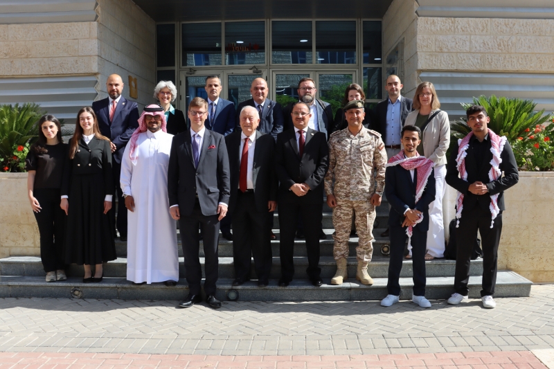 In celebration of the seventy-eighth Independence Day and the Silver Jubilee of the reign of His Majesty King Abdullah II ibn Al Hussein, the German Jordanian University inaugurated the activities of the German Week in the presence of its Chairman of the Board of Trustees, Engineer Othman Bdeir, GJU President Prof. Ala’aldeen Al-Halhouli, the German Ambassador to Amman Dr. Bertram von Moltke, the President of Magdeburg University, Dr. Manuela Schwartz, and representatives from the university's partners in Jordan and Germany.
