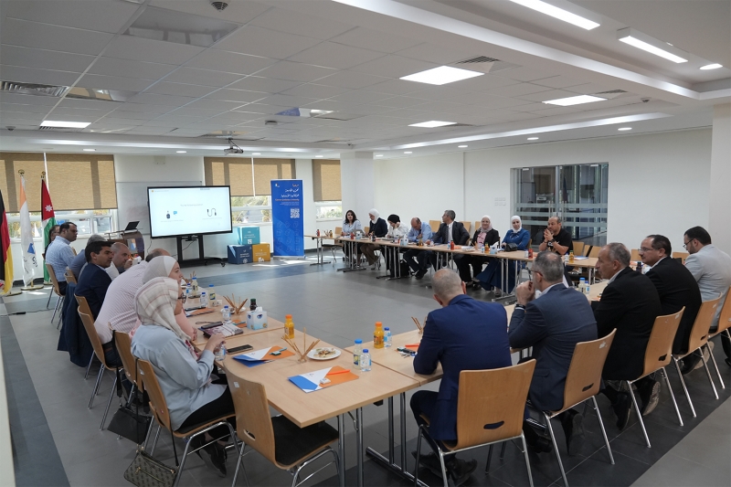 The event was attended by Prof. Ala’aldeen Al-Halhouli, President of GJU, and Dr. Ismael Hinti, President of Al-Hussein Technical University (HTU). Other distinguished participants included Dr. Nabeel Al-Fayoumi, Vice President for Technology at the Royal Scientific Society and member of the Future Technology Council; Ms. Valentina Qussisiya and Ms. Muna Zaqsaw from the Abdul Hameed Shoman Foundation; Ms. Rasha Jaradat from ProgressSoft; and Mrs. Lama Arabiat, Director of Artificial Intelligence and Advanced Technologies at the Ministry of Digital Economy and Entrepreneurship. Faculty members from GJU and HTU, along with representatives from several private-sector organizations, also participated in the discussions.