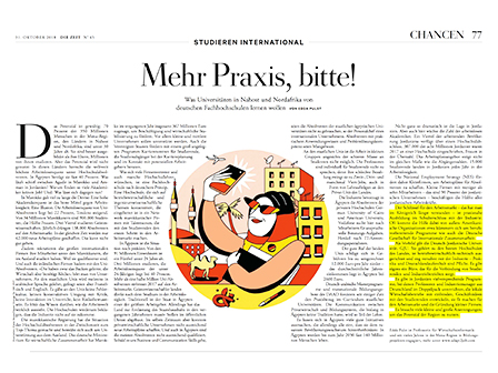 As part of an article written by Prof. Edda Pulst, about practical education and industrial links, the German Jordanian University (GJU) was mentioned in the German Newspaper “Die Zeit” (31.10.2018), as follows: