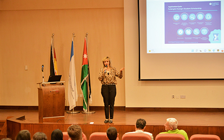 Senior Program Officer, Rana Al- Anani and program Officer, Naser al- Malkawi presented the programs offered to Jordanians by the Fulbright Commission; Jordanian Fulbright Scholar Research Award (Post-Doctoral) and Jordanian Fulbright Foreign Student Scholarship (Master’s Degree).