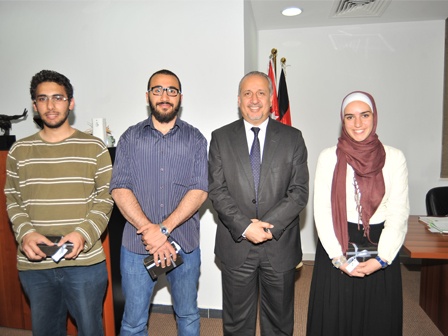 Prof. Natheer Abu.Obeid, the GJU President, honored the GJU Bachelor Research Team (Farah Atour, Firas Dabbas, Ghaith Al Shishani, Hisham Maher) and their supervisor, Prof. Nabil Ayoub, for their achievements on the microgravity proposed experiment in the Fellowship Program “Drop Tower Experiment Series”.