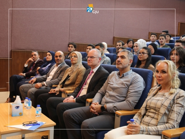 The School of Nursing at the German Jordanian University (GJU) organized a welcoming orientation for its new students for the academic year 2025/2026. The event was attended by GJU Vice President for International Affairs, Prof. Ralf Roßkopf; the Dean of the School of Nursing, Dr. Mayada Daibes; and the Head of the German Language Center, Mrs. Jacqueline Rogler, along with members of the school’s academic staff.