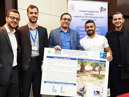 Moreover, on April 25, 2019, students Alaa Al Zghoul, Ashraf Shatat, Hazem Qadiri, Zaid Sakejha and Aws Frej from the Electrical and Communication Engineering Department, won the fourth prize in the 10th Information Technology Students Activity Fair (ITSAF) organized by PETRA university for their project entitled (Static and Mobile Sensor network utilizing an Unmanned Ground Vehicle for Remote Sensing).