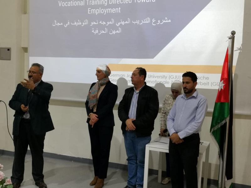 The Consultation and Training Center at the German Jordanian University celebrated the graduation of participants in the courses of product design, three-dimensional printing, carpentry and decoration (wood carving), which were implemented for the local community as part of the vocational training project directed towards employment in the field of craft professions funded by the German Agency for International Cooperation (GIZ).
