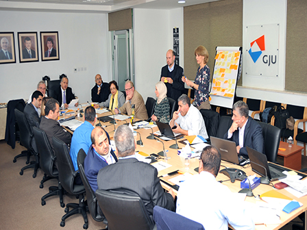 Since its establishment in 2005, GJU has been focusing on applied sciences and innovation. One of its core concepts is to build a close university-industry partnership in order to connect researchers, students and graduates with the private sector in Jordan, the region and Germany on different levels. Over the years, many collaborative activities with industrial partners from Jordan, Germany and the region were already successfully implemented at GJU. Hence, in line with the motto "together we can do it even better" the workshop aimed at defining the top priorities and necessary next steps to increase the collaboration with industrial partners at the University as a whole and at the different Schools.