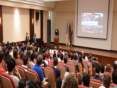 Prof. Natheer Abu Obeid, GJU President assured on students to accept the others and to open to other cultures, and how to represent their country in a good and positive way in order to reflect that bright model of the Jordanian youth, saying that students are the future of their country.