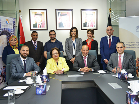 Mr.Osama Al Hiyari, Mr. Sa’ad Amin Farah and Ms. Reem Abu Okab attended the MoU signing from gig- Jordan side, while from GJU side the Dean of SMLS Dr. Malik AlSharairi and Dean's Assistant Abdelrahim Alsoussi.