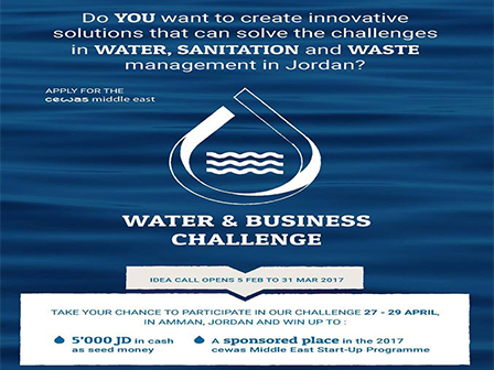 Currently students and professionals are invited to join the cewas Middle East Water and Business Challenge with the objective to develop new sustainable projects, products, services and business ideas in the water, sanitation or waste sector. Submission of applications is open until 31st Mar. 2017. More information on how to apply can be found here: