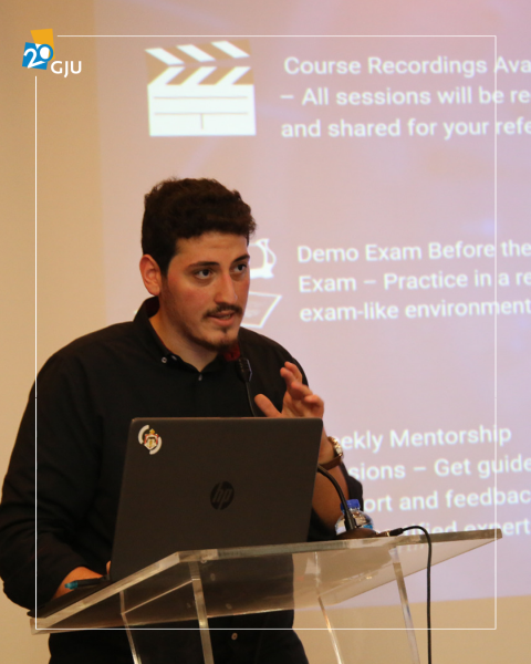 During the session, Mr. Mohammad Abu Shanab and Ms. Lara Amaireh from INJAZ presented the program’s objectives and highlighted its role in providing students with access to instructor-led online training designed to prepare them for Microsoft or AWS certifications in one of the following tracks: Cloud Computing, Cybersecurity, Data Analytics, or Software Development.