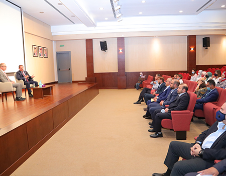 At the end of the meeting, a discussion took place between Al-Halhouli and faculty members, in the presence of Vice-Presidents, Prof. Ziad Haddad and Prof. Ralf Rosskopf, about the requirements of the next stage and the possibilities of implementation and improvement.