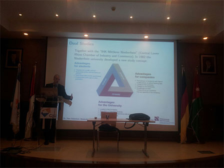 Ueberholz, a Professor of Computer Science and Parallel Computing at the Niederrhein University of Applied Science (Hochschule Niederrhein, HN) in Krefeld, Germany visited GJU. Aim of the visit was next to the scientific exchange the extension of the memorandum of understanding between Niederrhein University of Applied Science and GJU to link the Faculty of Electrical Engineering and Computer Science at the HN and the School of Electrical Engineering and Information Technology at GJU. This extension will allow GJU students of computer science and computer engineering to spend part of their German year at this new partner university and profit from the innovative and research oriented teaching from next fall on wards.