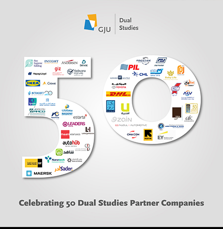 GJU has first launched the Dual Studies program in 2018 as a specialized track to bridge the gap between theoretical education and practical experience. The success of this program remains primarily reliant on the acquisition of industrial partners. Such companies who are willing to host and train students are the driving force behind offering this track for different majors.