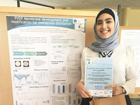 Bana participated in the conference during her Erasmus+ internship at Nicolaus Copernicus University in Toruń. She presented her research results done during the internship under the supervision of Prof. Al-Gharabli from Jordan and Prof. Wojciech Kujawski and Dr. Joanna Kujawa from Poland. Bana Al-Omari competed in the best poster presentation competition and won the third prize.