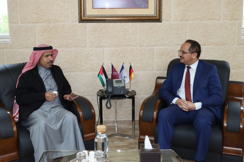 The President of the German Jordanian University (GJU), Prof. Ala’aldeen Al-Halhouli, received the Saudi Cultural Attaché in Jordan, Prof. Muhammad bin Khazim Al Shamri, and his accompanying delegation. The meeting aimed to discuss prospects for academic cooperation and enhance opportunities for scientific partnerships between the two countries.
