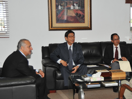 His Excellency Mr. Apichart Phetcharatana Ambassador of the Kingdom of Thailand visited GJU yesterday and met with the President of the University Prof. Natheer Abu Obeid, to discuss ways of cooperation in the fields of education and research as well as viewing the GJU profile and benefit from its successful experience in establishing a university along the lines of GJU.