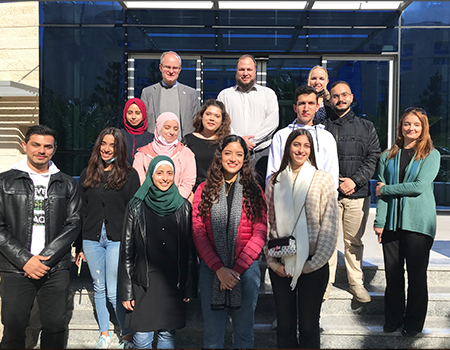 On Wednesday, November 24, 2021, the Vice President for International Affairs, Prof. Ralf Roßkopf, and the Director of the German Language Center (GLC), Jacqueline Rogler, at the German Jordanian University (GJU)و visited the students of the first B2 course in the presence of coordinator of the course, Samir Haskic, and the course instructor, Friederike Haumann.