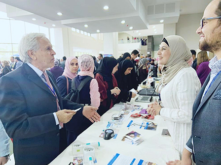 The exhibition was also an opportunity to meet participants from different disciplines and countries and presenting to them the training courses offered by the GJU Vision Rehabilitation Center for the specialists interested in the category of persons with visual impairment, which include the blind and low vision.